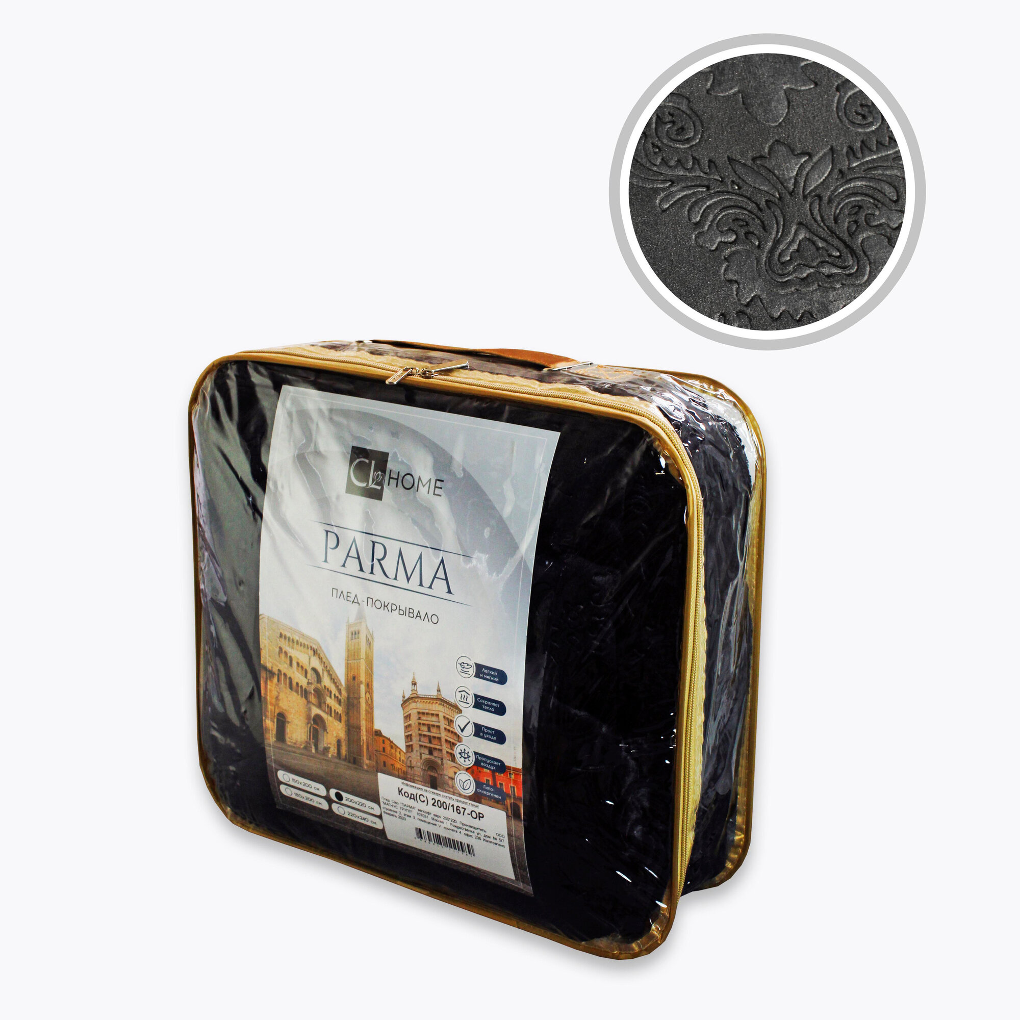 Плед 180х200 2-спальный Cleo Parma черный, покрывало на кровать и диван пушистое с рисунком, велсофт