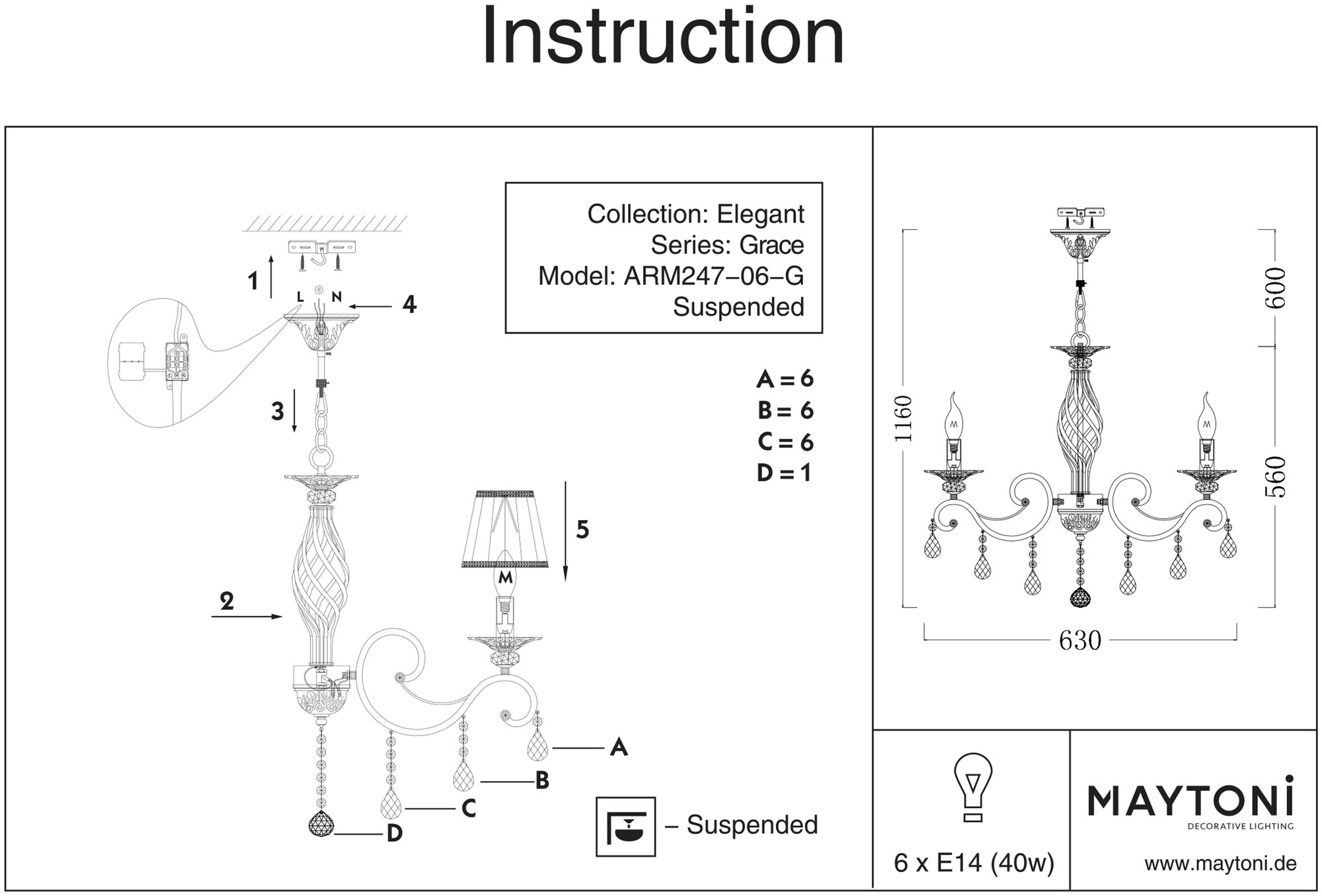 Люстра подвесная Maytoni Grace ARM247-06-G