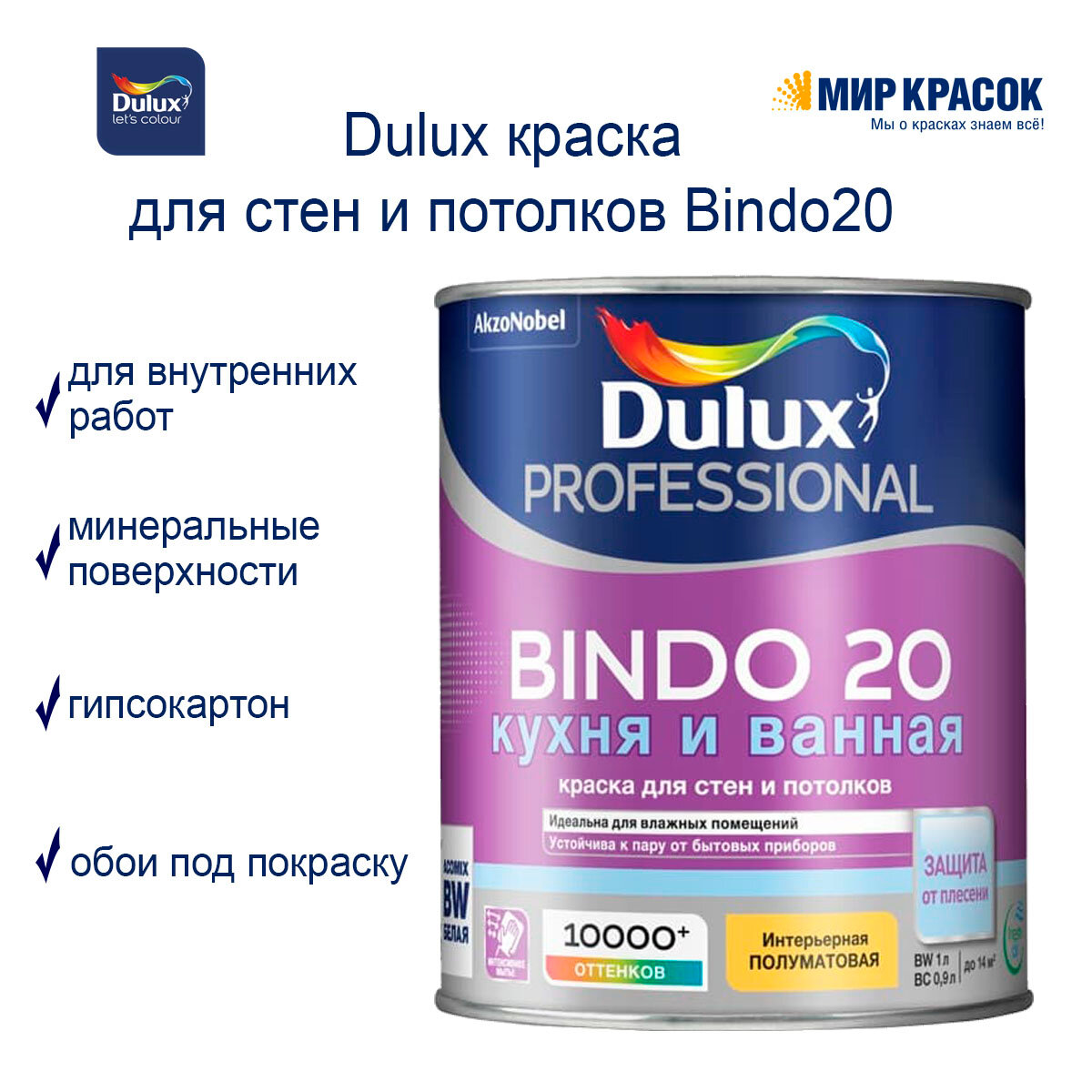 DULUX BINDO 20 кухня И ванная краска для стен и потолков, полуматовая, база BW (9л)