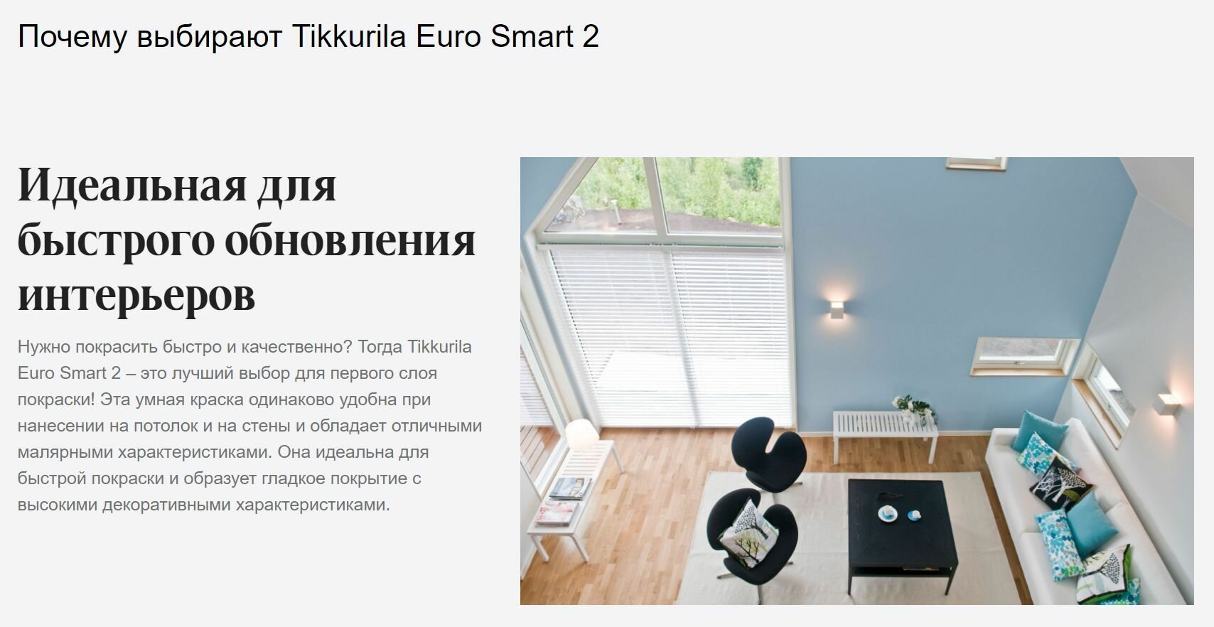 Tikkurila Euro Smart 2 краска интерьерная для стен и потолка 9 3473 .