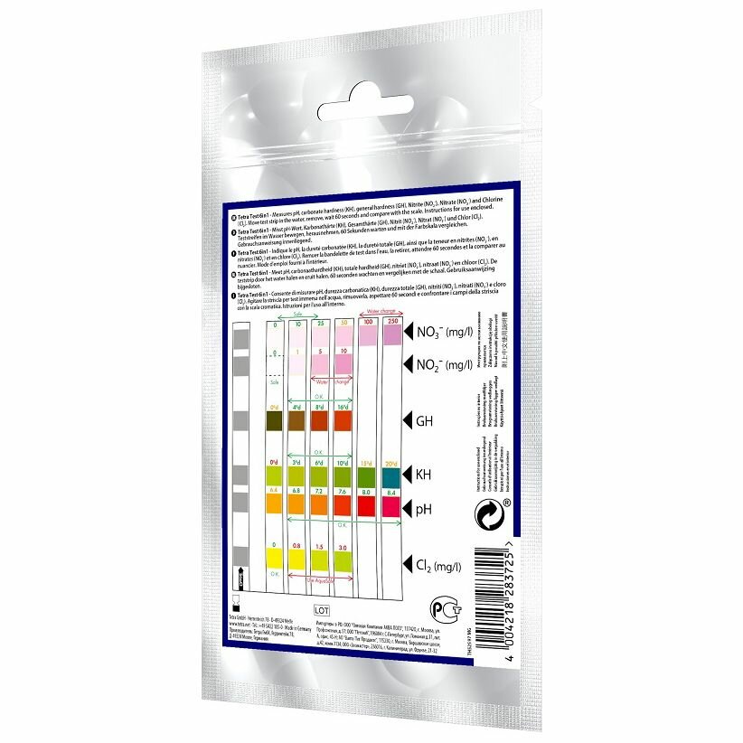TetraTest 6 в 1 GH/KH/NO2/NO3/pH/Cl тестовые полоски для пресной воды 10 шт