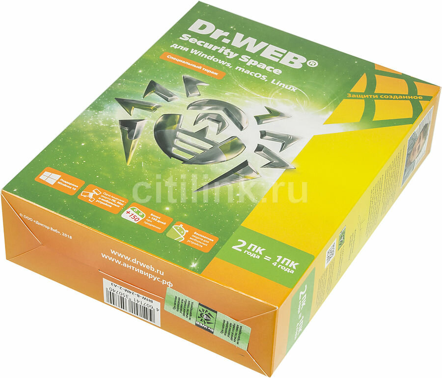 Купить Dr.Web Security Space, коробочная версия с диском, русский, количество пользователей/устройств: 2 ус., 24 мес.