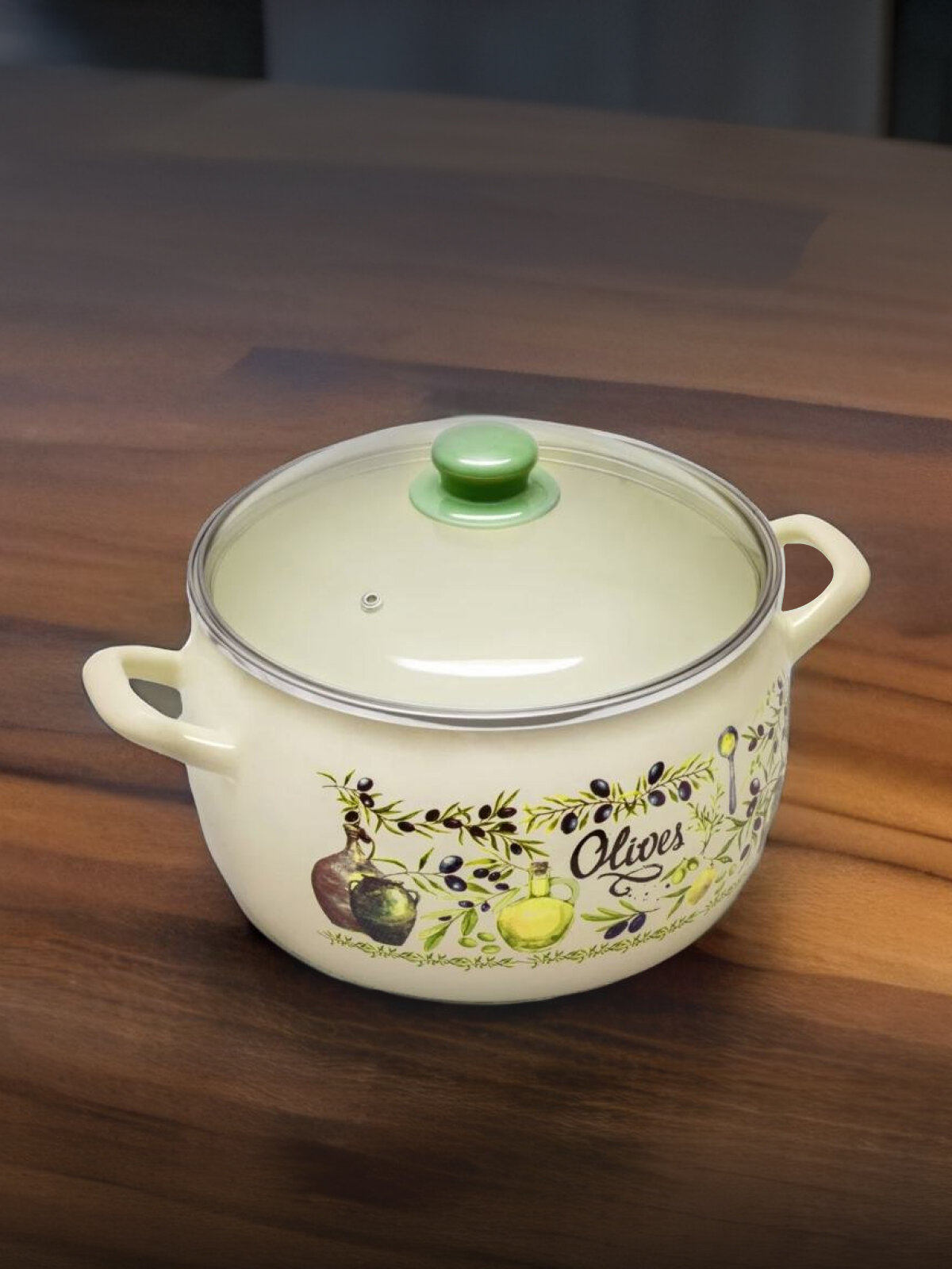 Кастрюля эмалированная Metrot Олива с крышкой, 2,2 л