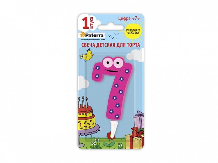 Свеча детская для торта PATERRA, цифра 7 (1шт.в упаковке)