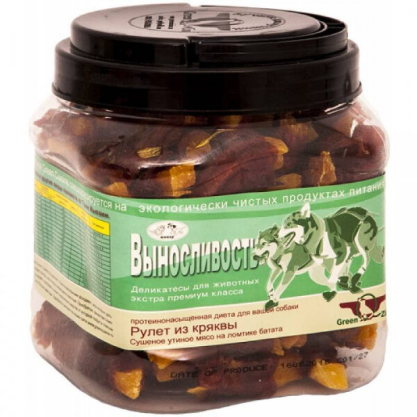 GreenQZin Лакомство для собак Выносливость (сушеное утиное мясо на ломтике батата) туба 750г