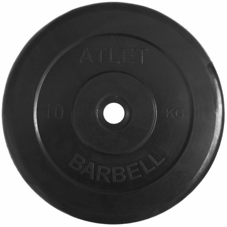 Диск обрезиненный MB Barbell Atlet черный 26 мм, 10 кг MB-AtletB26-10