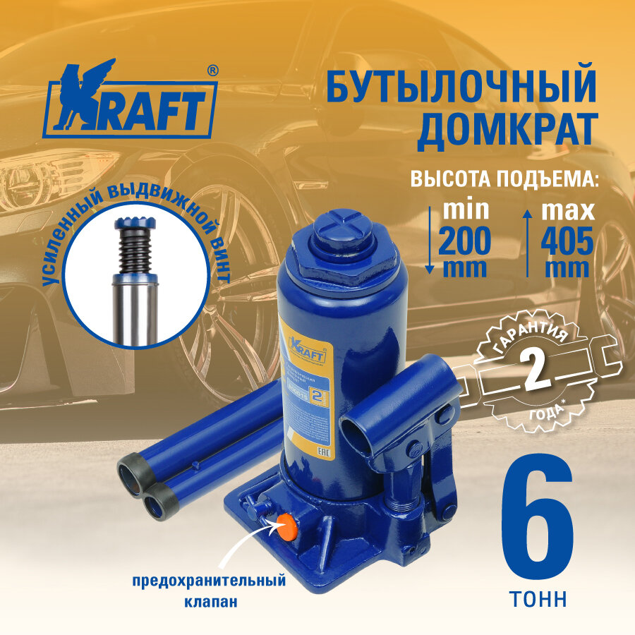 Домкрат Бутылочный 6 Т. ( Min 200Mm-Max 405Mm) Kraft арт. KT800015
