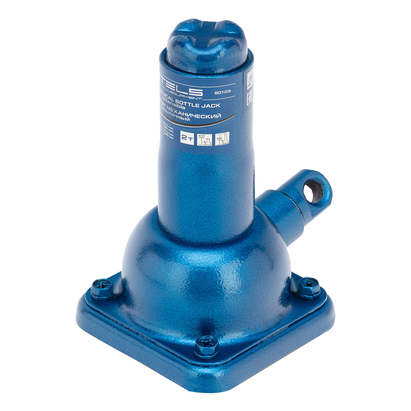 Домкрат механический бутылочный, 2 т, h подъема 210–390 мм, 2 части (домкрат, ручка) Stels 50103