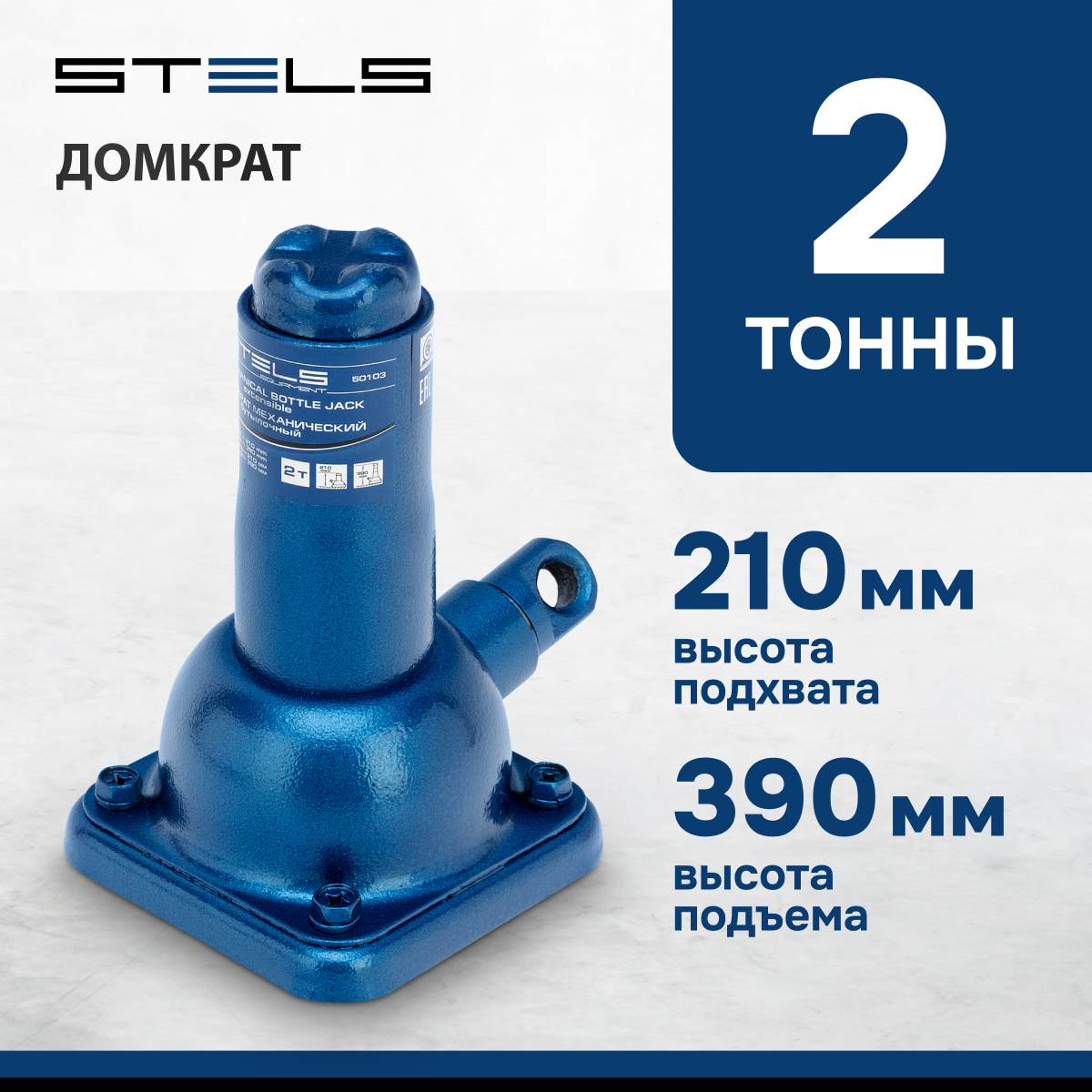 Домкрат механический бутылочный Stels 50103, 2 т, высота подъема 210390 мм .