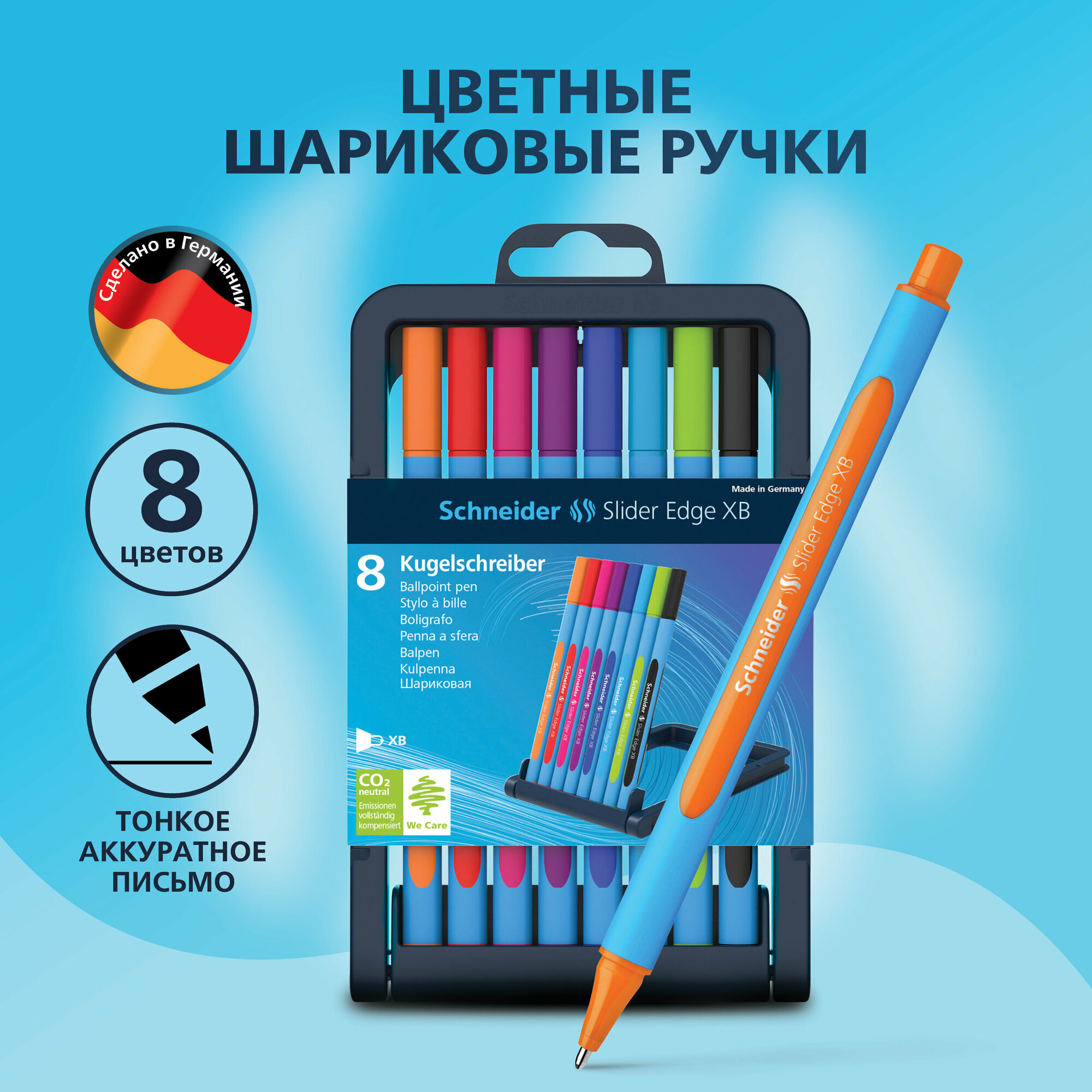 Набор шариковых ручек Schneider "Slider Edge", 8шт., 8 цветов, 1,4мм