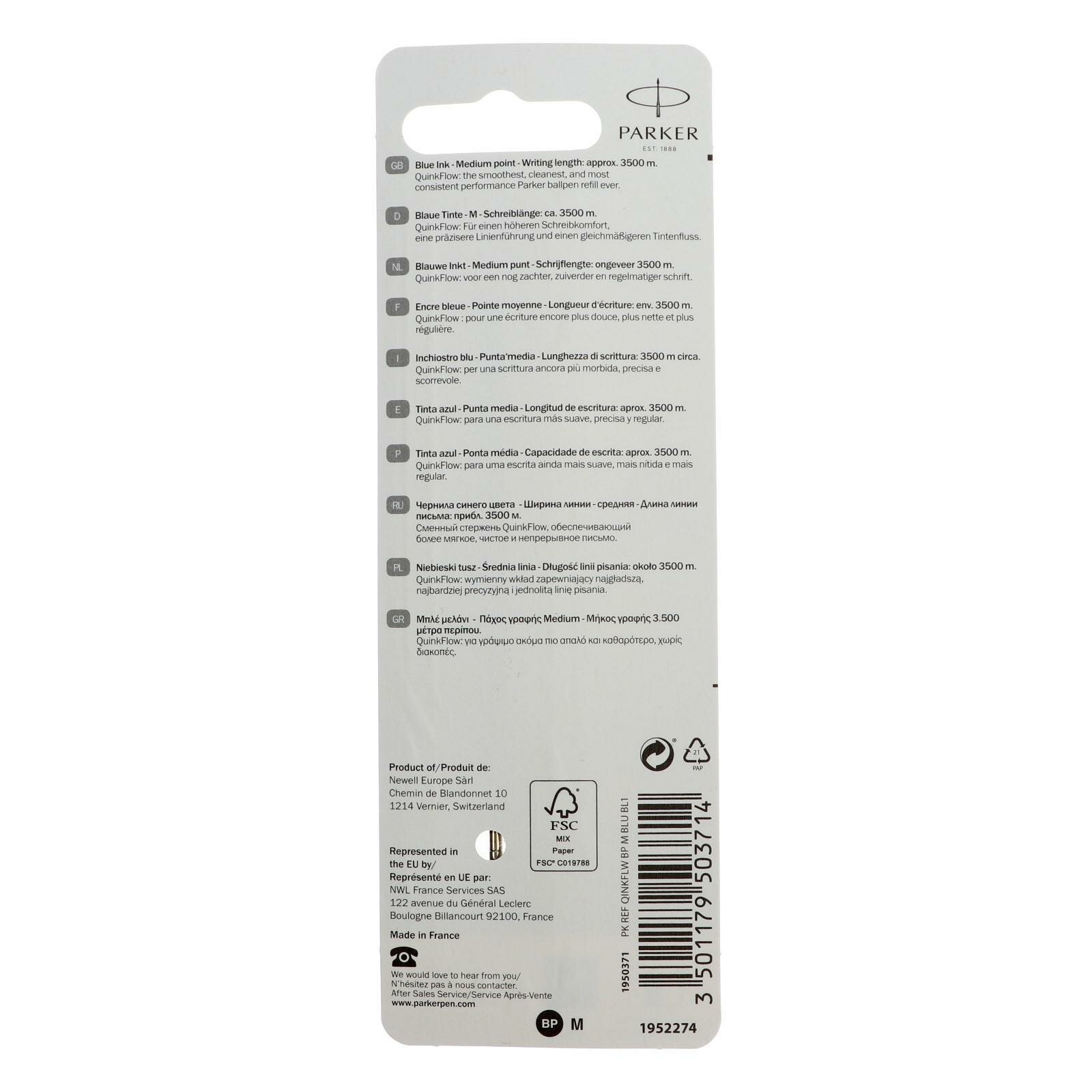 Купить Стержень шариковый 98мм ParkerQuink Flow,1мм,синий, блистер,Франция,1950371