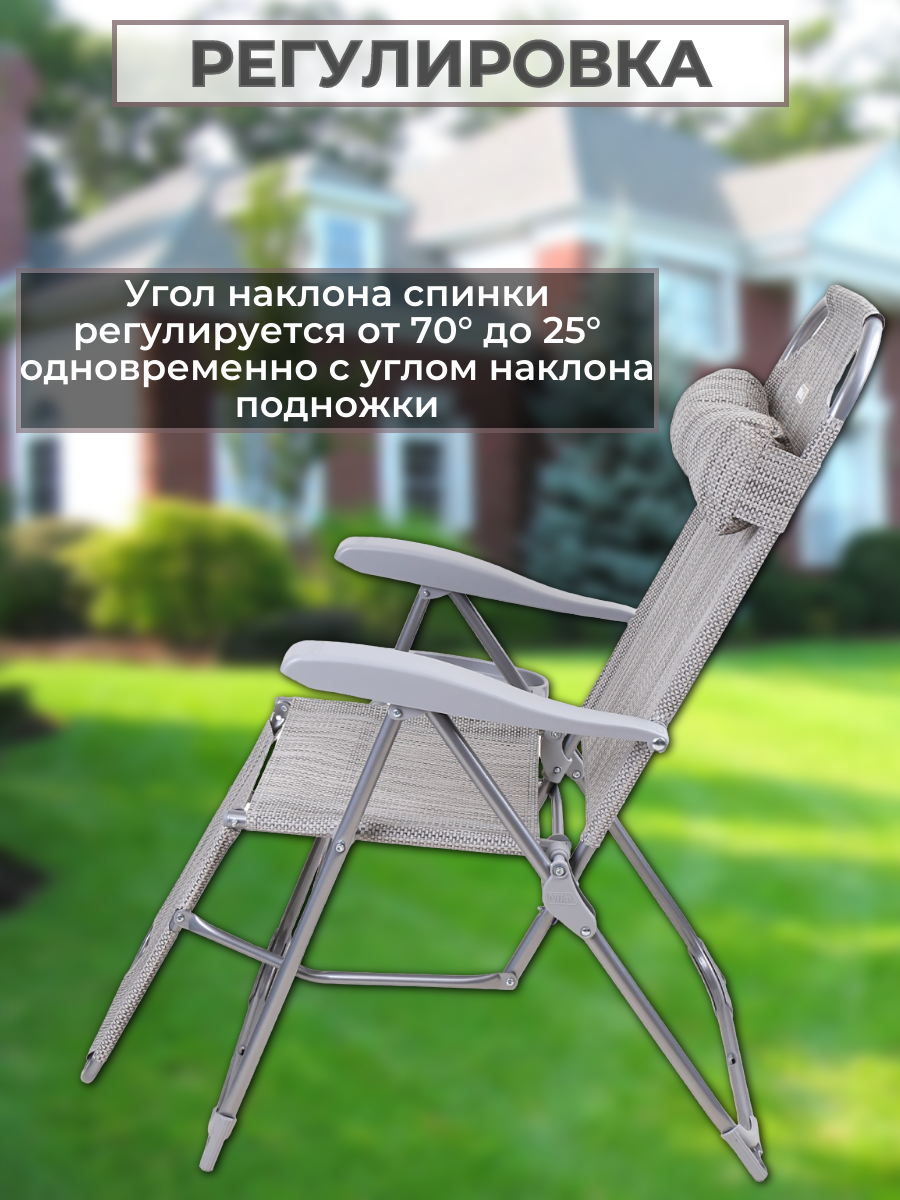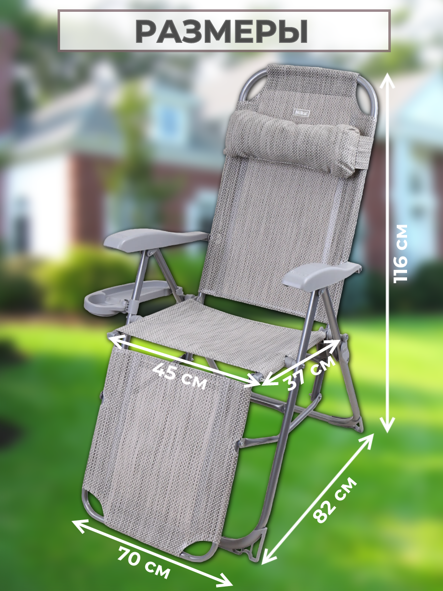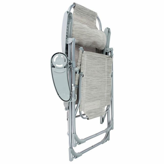 Кресло шезлонг складное с полкой, подножкой и съемным подголовником, 8 положений спинки