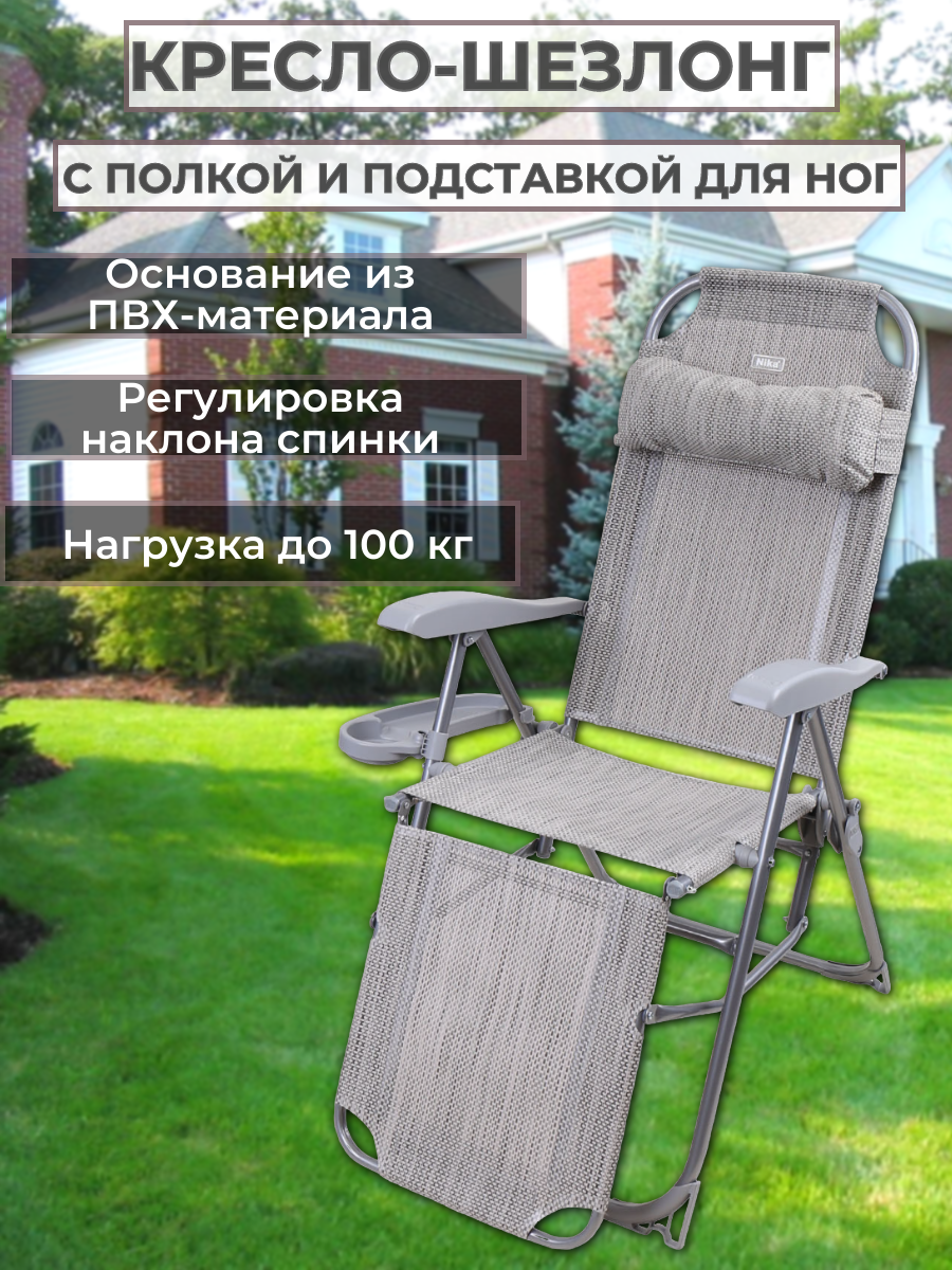 Кресло-шезлонг сетка с подножкой и полкой КШ3/2 Муссон до 100кг габариты 820х590х1160мм, Nika
