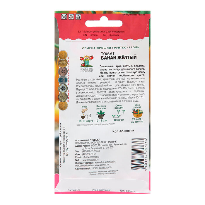 Семена овощей Поиск томат Банан желтый 10 шт.