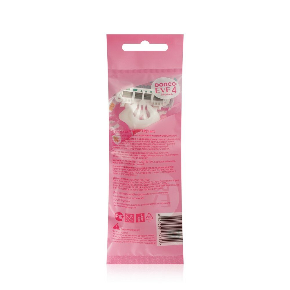 Дорко / Dorco Eve4 Fra-200 - Одноразовый станок для бритья женский 1 шт