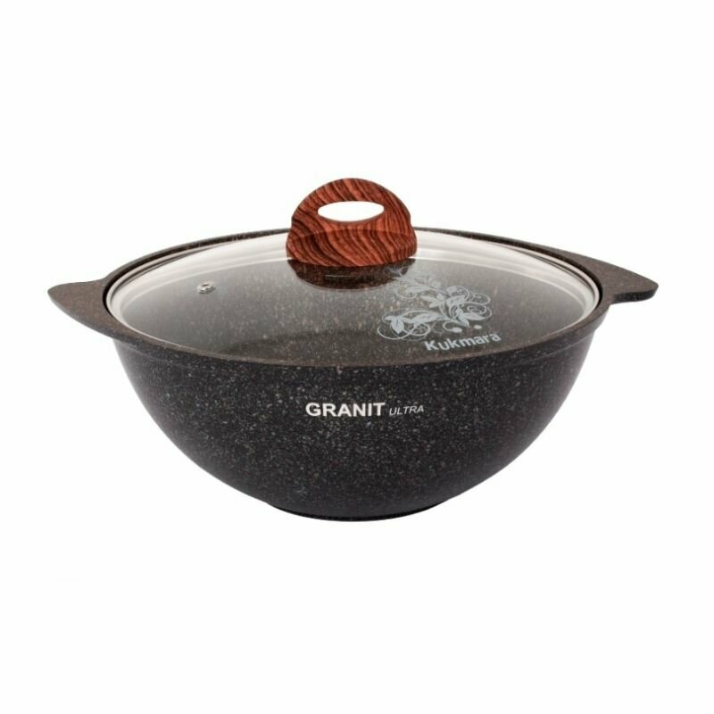 Казан Kukmara 3,5 л Мрамор Кофейный, литой алюминий со стеклянной крышкой 26см, кмк37а