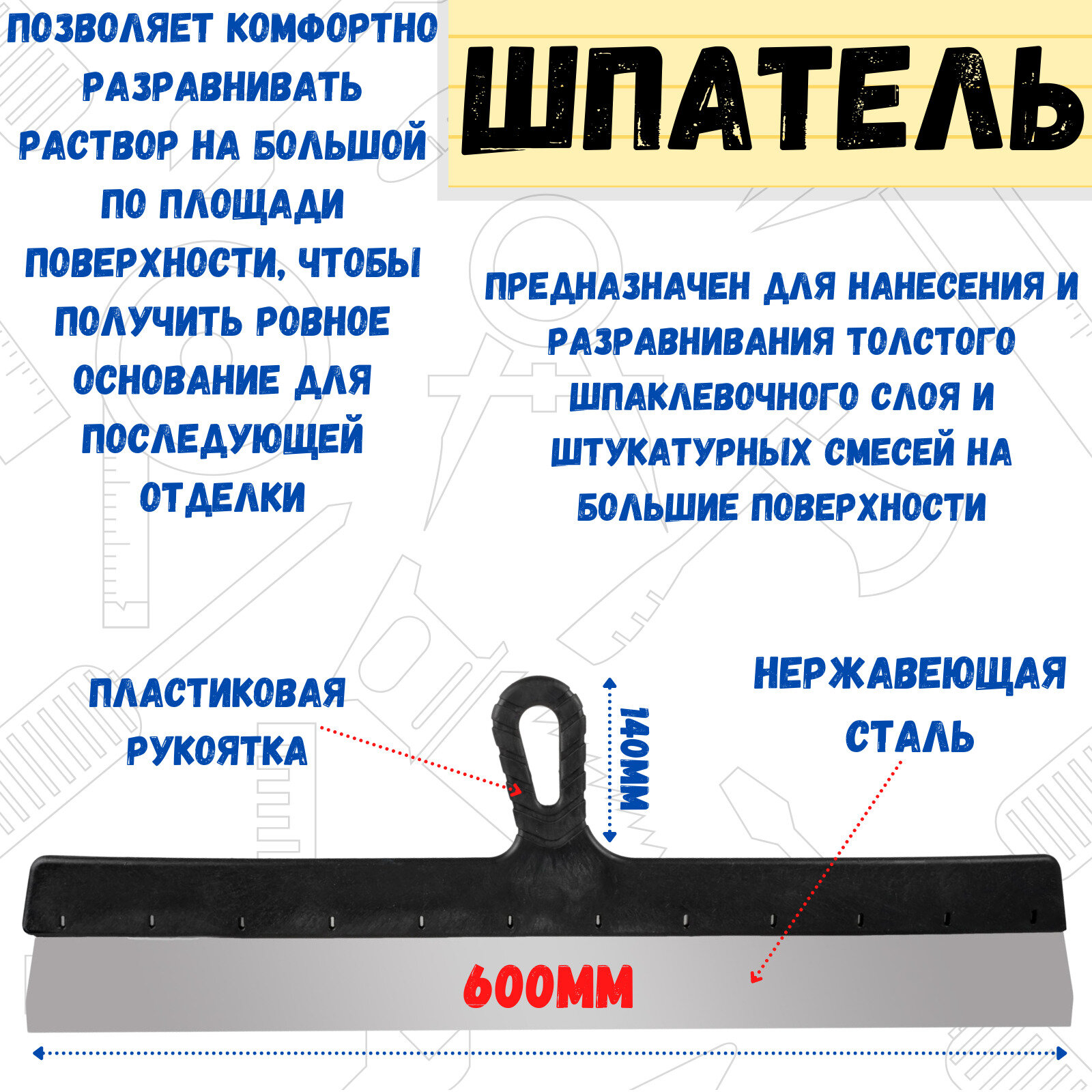 СохранитьШпатель фасадный Remocolor прямой 600мм нержавеющая сталь пластиковая ручка 12-5-600 серия Мастер интересное: