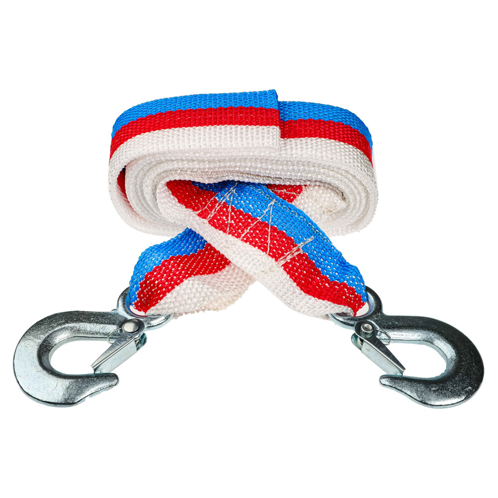 Трос буксировочный лента 5 т, 2 крюка, в блистере (стропа усиленная)