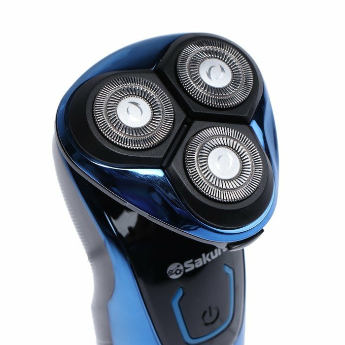 SAKURA Электробритва Sakura SA-5420BL,3 Вт, роторная, 3 головки, сухое/влажное бритьё, триммер, АКБ