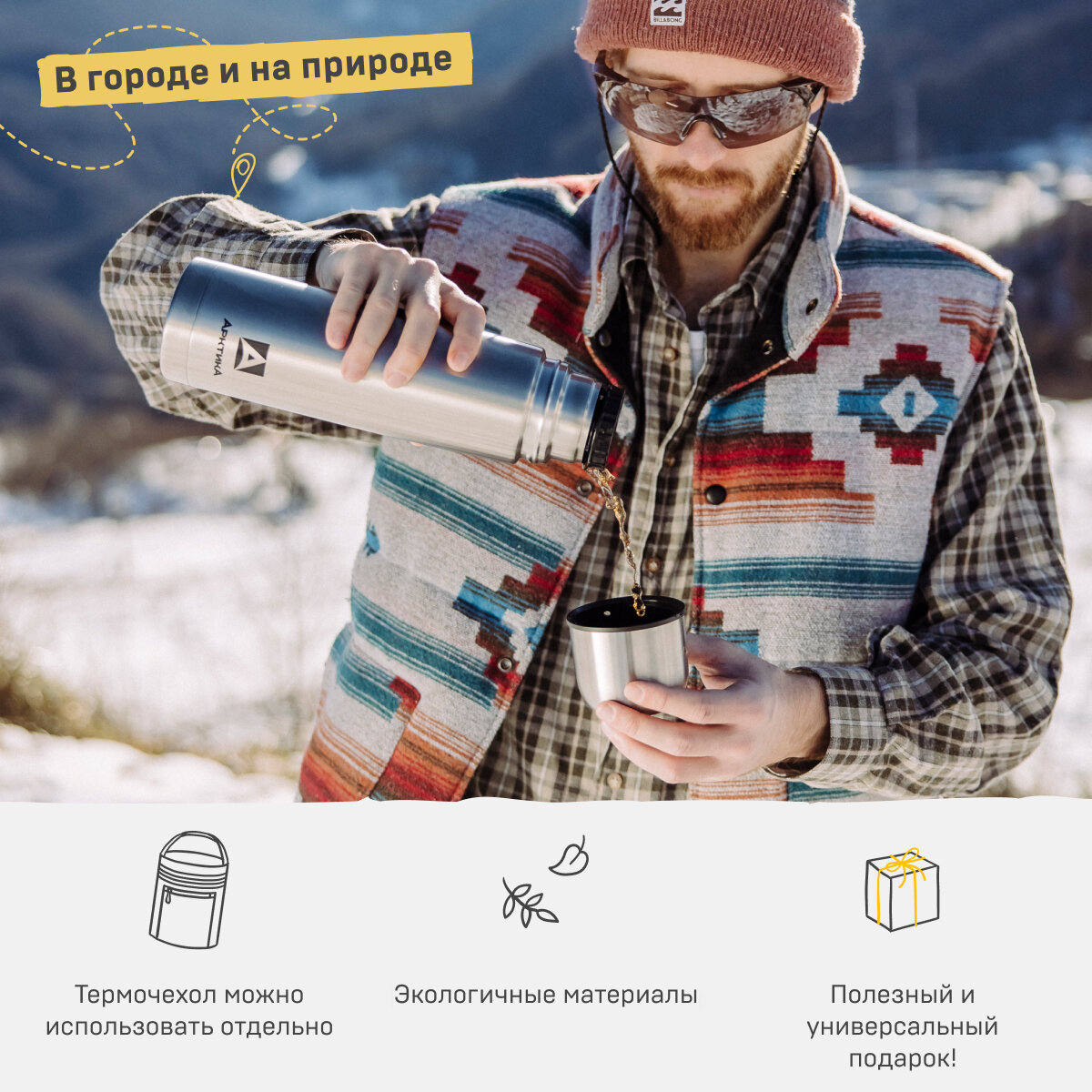 Термос Арктика в чехле питьевой 101-1000А, 1000 мл., 26ч