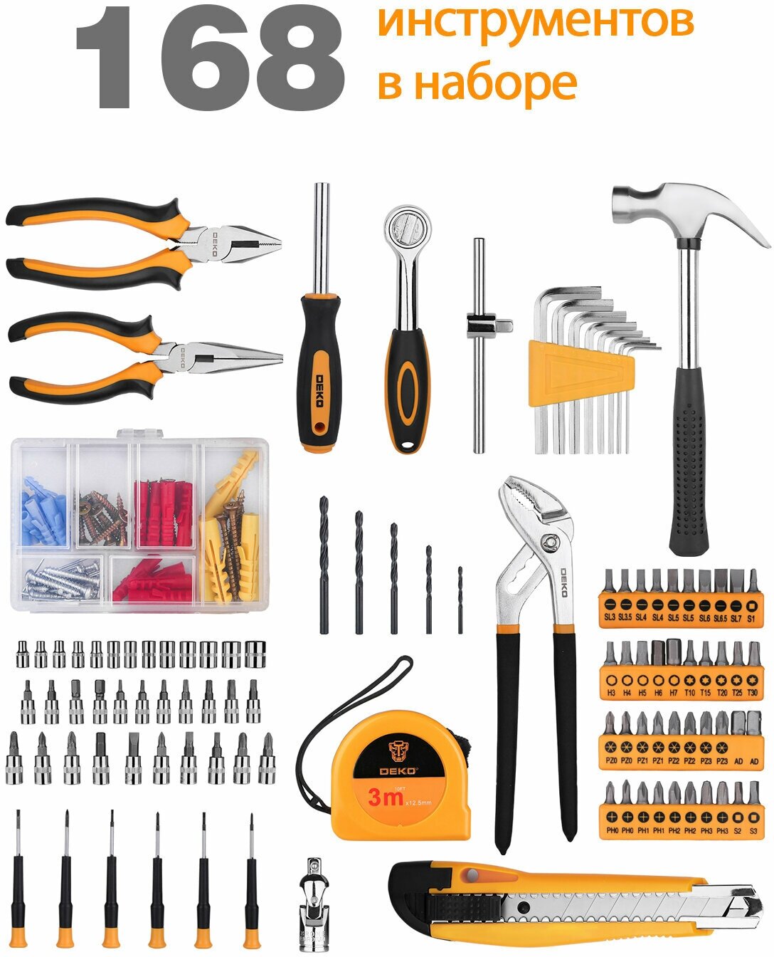 DEKO Набор инструментов для дома DKMT168 168шт.