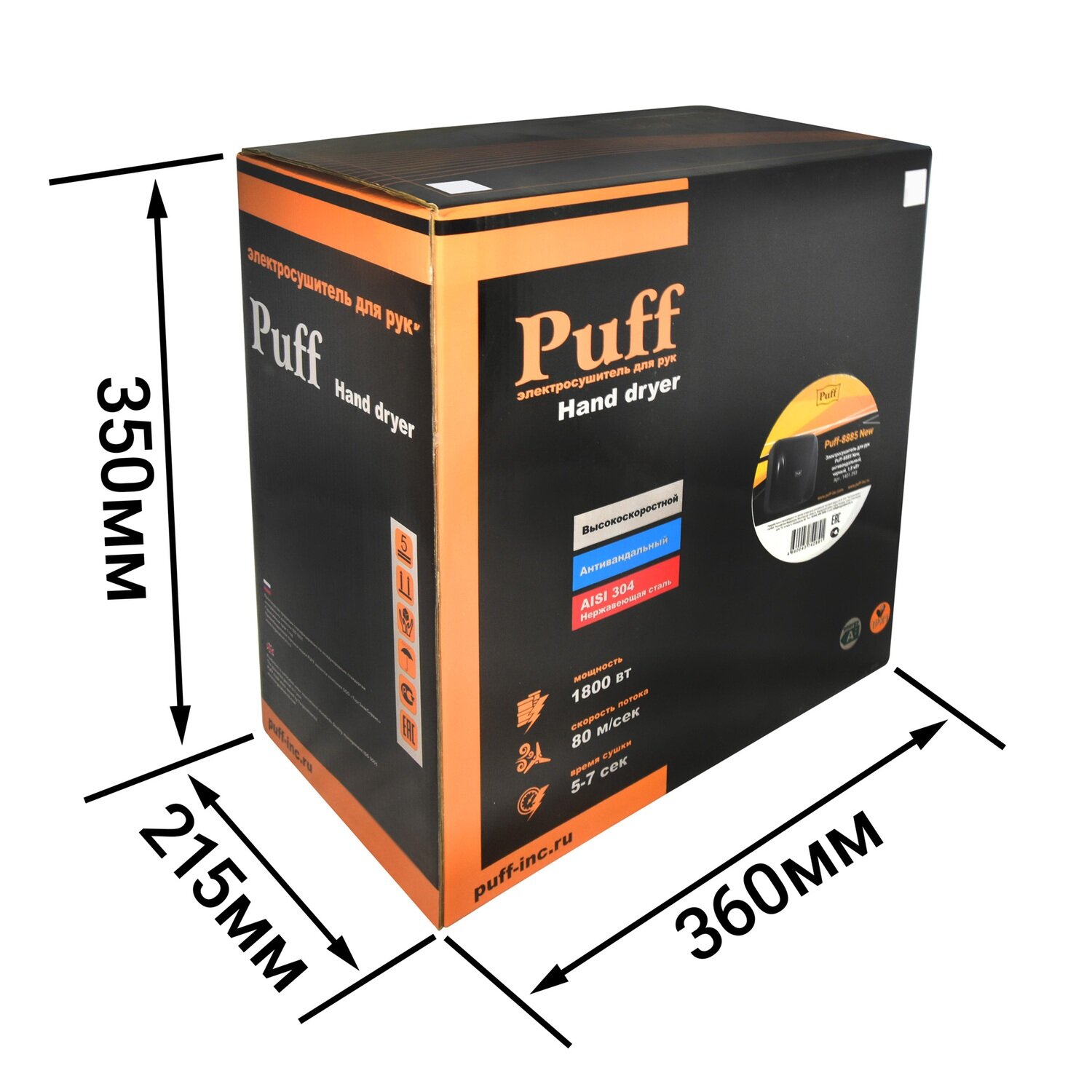 Puff Электросушитель для рук 8885, антивандальный, черный, 1,8 кВт, 35х36х21.5 см 1401.393