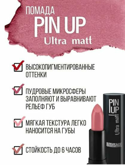 LUXVISAGE Губная помада PIN UP ULTRA MATT матовая тон 517 Ariana / макияж