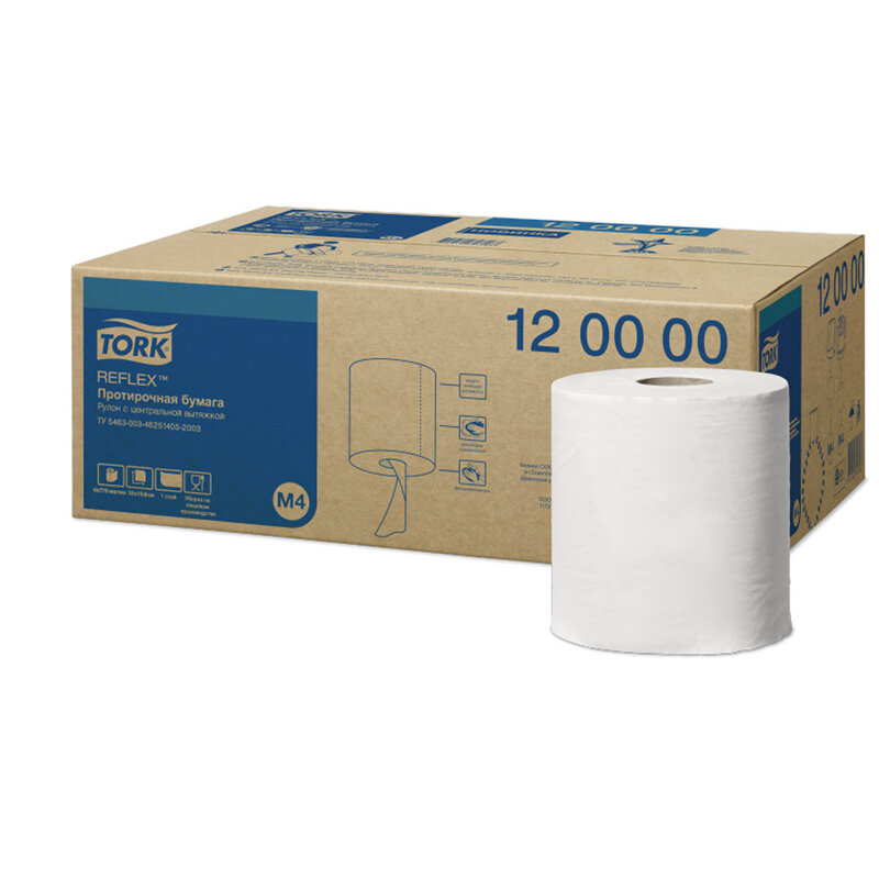 Протирочная бумага в рулоне Tork Reflex, Advanced, система М4, 270 м, 1 слой, белая, 1 рулон (арт: 120000)