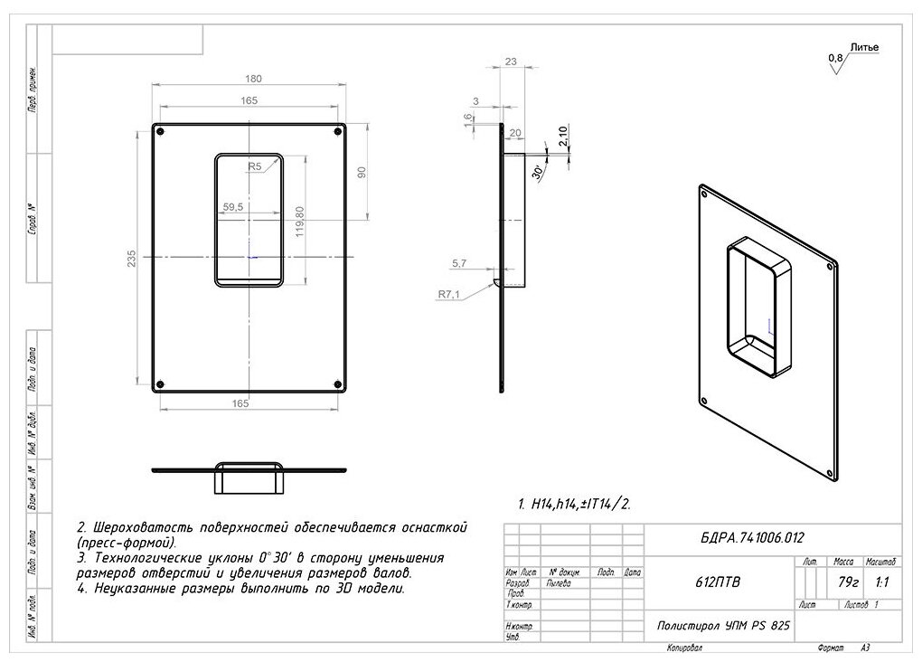 612ПТВ, Площадка торцевая вертикальная пластиковая 180х250 фланец 60х120