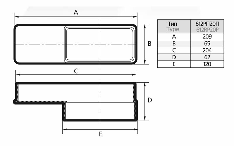 612РП20П, Соединитель эксцентриковый плоского воздуховода с плоским 60х120/60х204