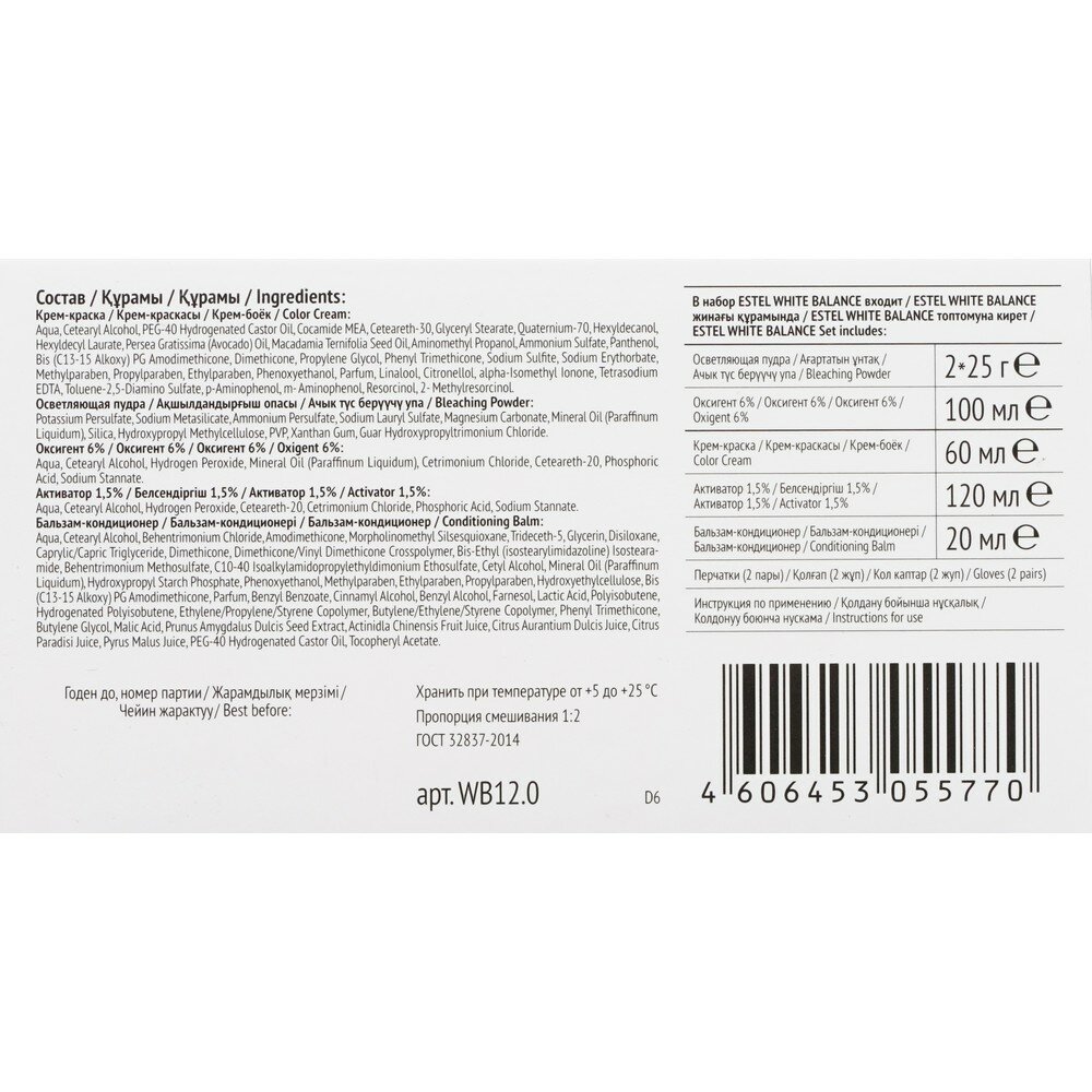 ESTEL Набор "Секрет идеального блонда ESTEL WHITE BALANCE" тон 12.7 Завораживающий Жемчуг