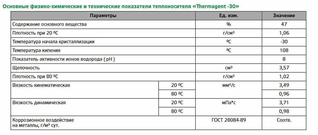 | Тип теплоносителя | этиленгликоль |