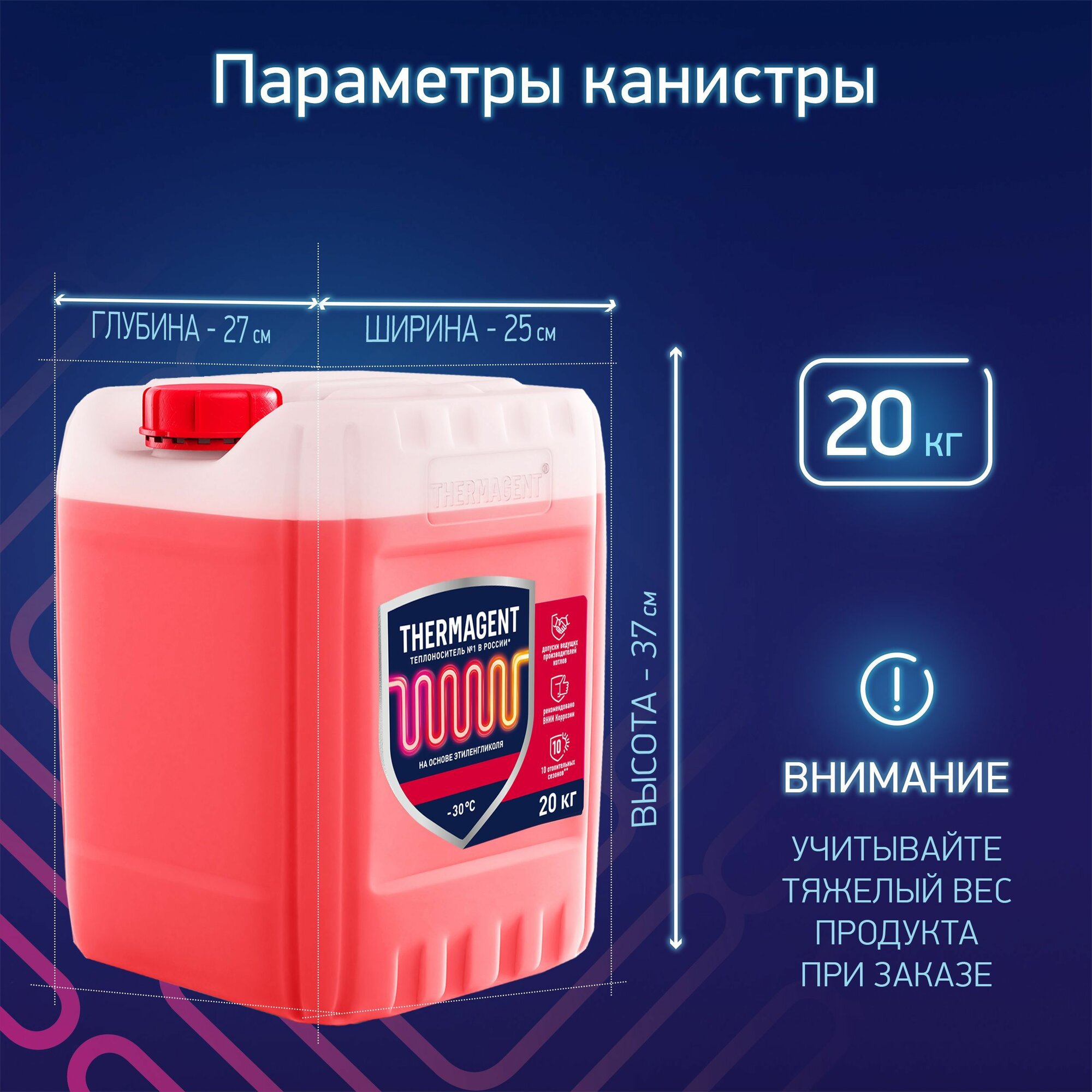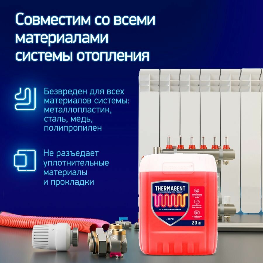 Теплохладоноситель THERMAGENT -30 этиленгликоль 10 кг, термагент теплоноситель антифриз для системы отопления и кондиционирования