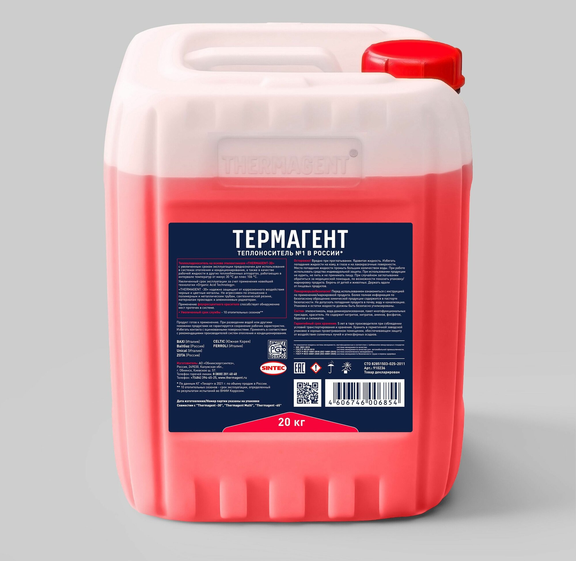 Ниже Вы можете прочитать отзывы на Теплоноситель Обнинскоргсинтез THERMAGENT -30 20 кг (Этиленгликоль), ознакомится с подробными характеристиками, посмотреть интересные обзоры и фотографии на Теплоноситель Обнинскоргсинтез THERMAGENT -30 20 кг (Этиленгликоль).