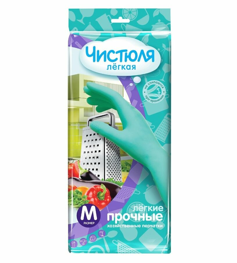 Перчатки Чистюля Легкая хозяйственные легкие прочные, 1 пара, размер M, цвет бирюзовый