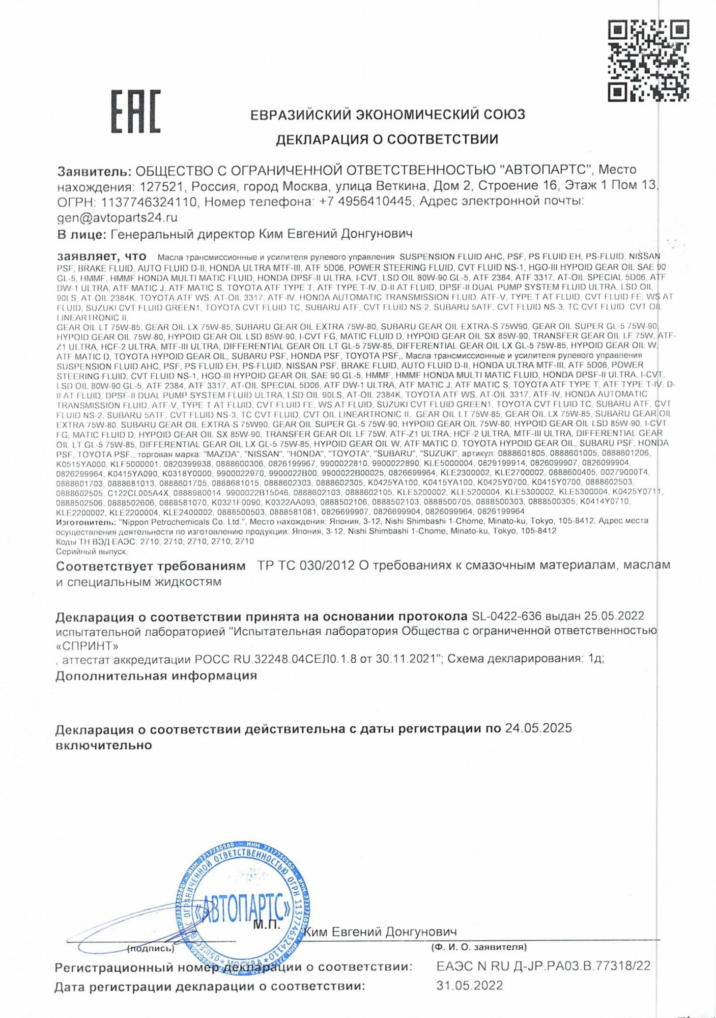 | Плюсы: | Масло то настоящее . Залил в вариатор Jatco jf 015 . |