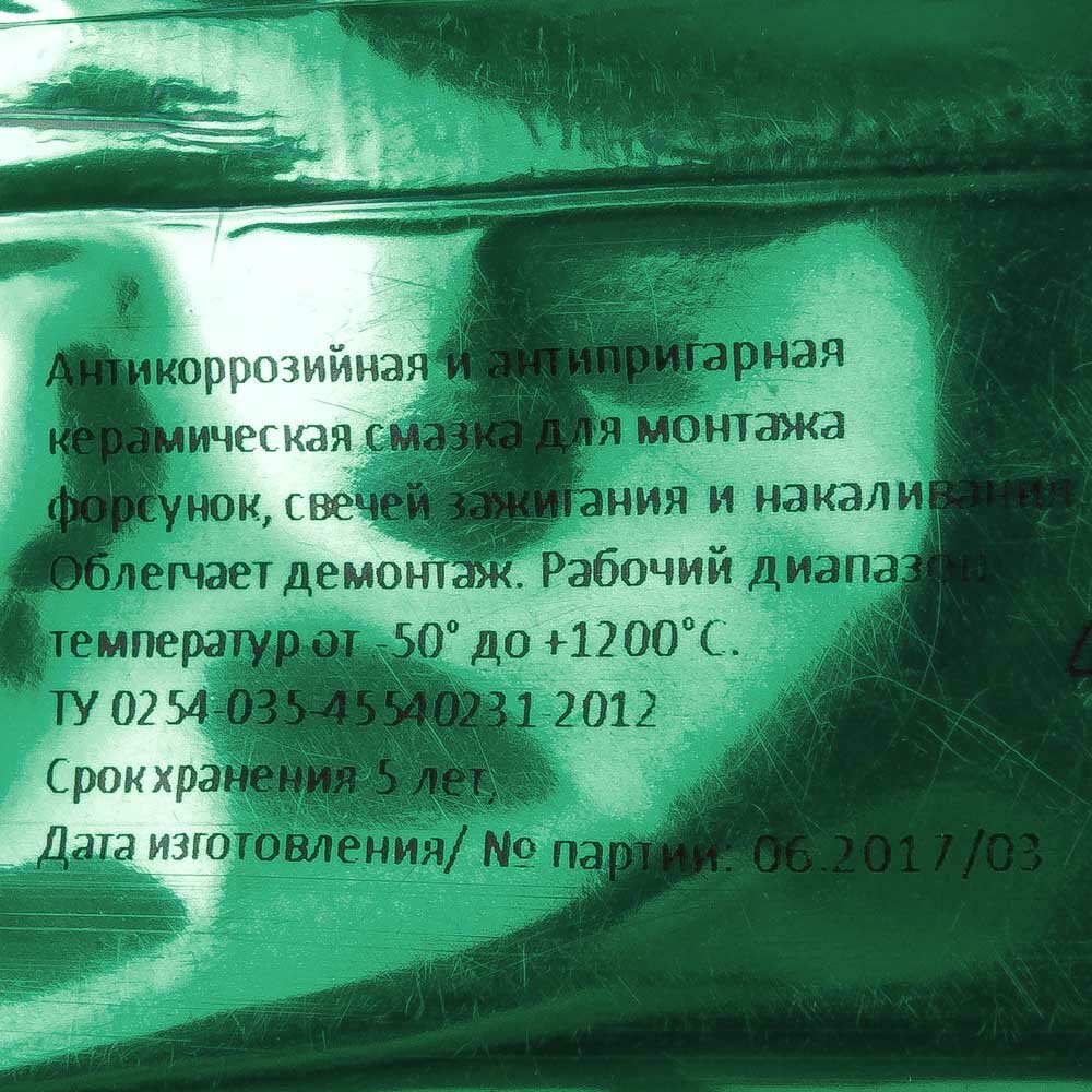 Смазка керамическая 5гр - МС 1650 для форсунок, свечей зажигания и накаливания, облегчает монтаж/демонтаж, защищает от прикипания и коррозии, от -50С до +1200С, сашет