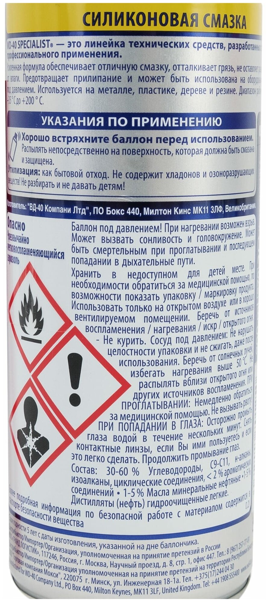 Смазка силиконовая wd-40 specialist 200мл аэрозоль
