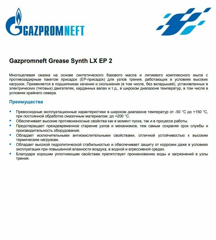 Ниже Вы можете прочитать отзывы на GAZPROMNEFT 2389906928 смазка GAZPROMNEFT GREASE LX EP 2, ЛИТ.5Л(4КГ), ознакомится с подробными характеристиками, посмотреть интересные обзоры и фотографии на GAZPROMNEFT 2389906928 смазка GAZPROMNEFT GREASE LX EP 2, ЛИТ.5Л(4КГ).