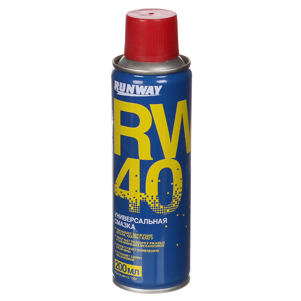 Смазка универсальная RW-40 (аналог WD-40) 200 мл, с трубочкой, RUNWAY RW6096