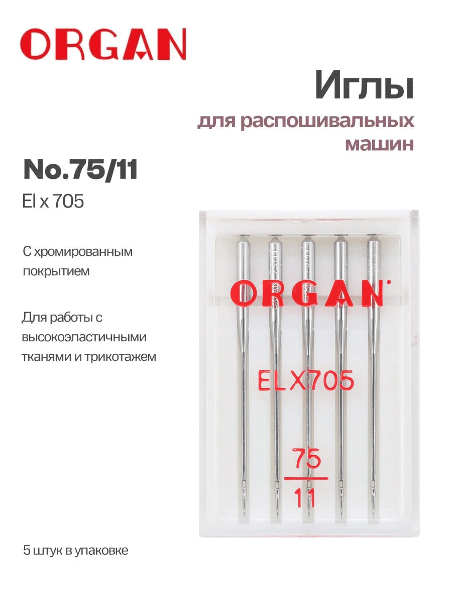 Иглы для швейной машины ORGAN el x 705, 5 шт, в блистере, № 75