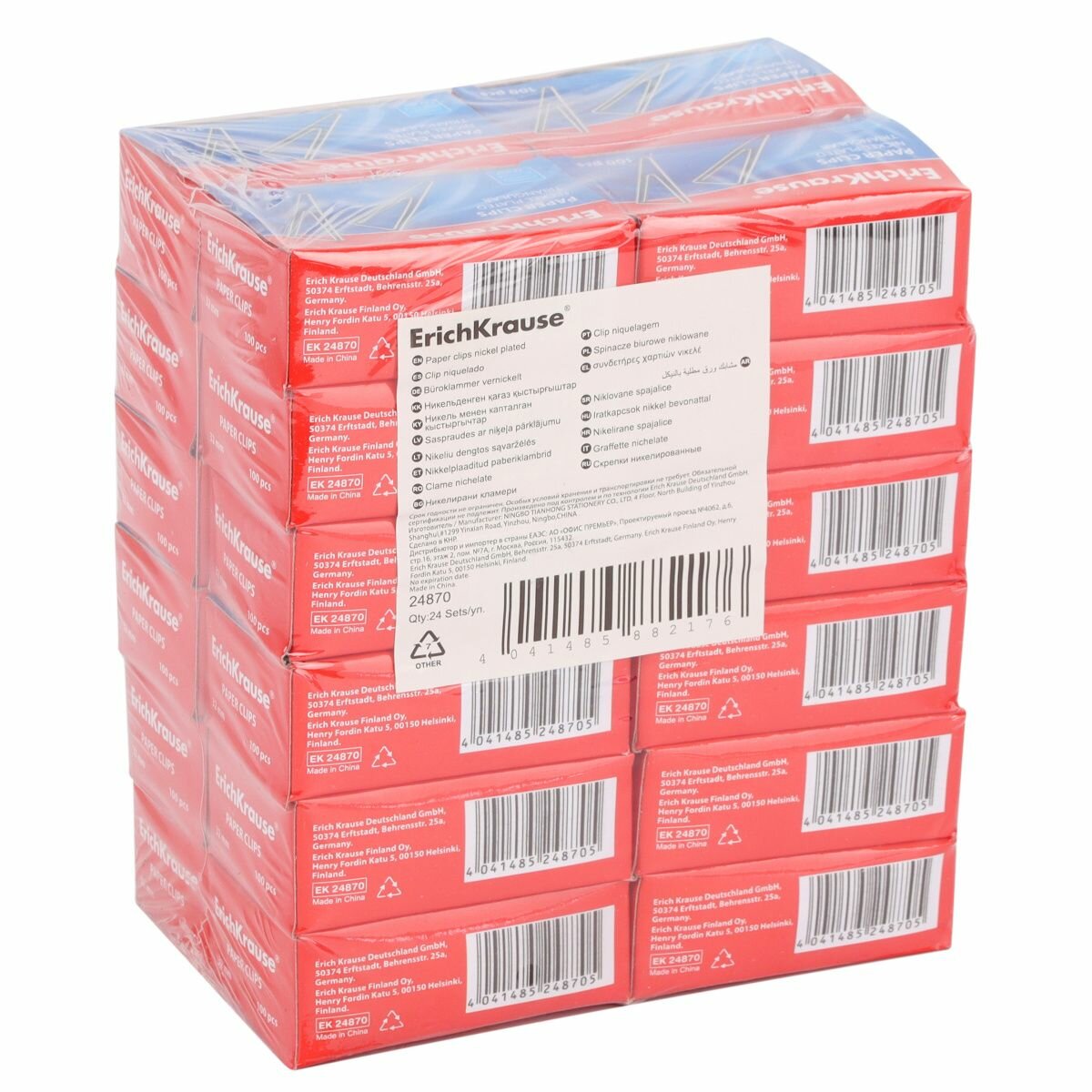 Скрепки Erich Krause (32мм, металлические, треугольные) картонная упаковка, 100шт. (24870)