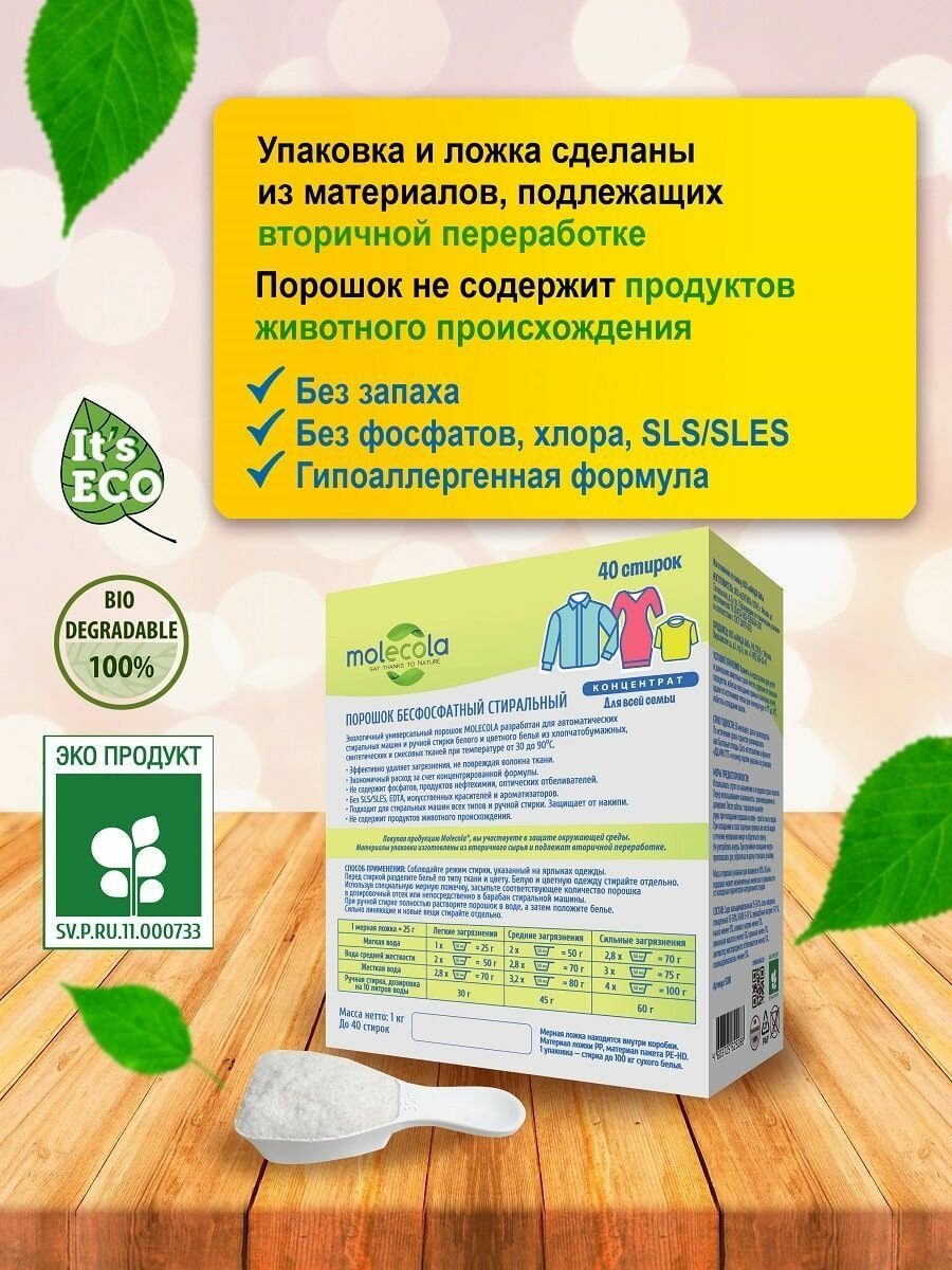 MOLECOLA - Экологичный универсальный порошок для стирки концентрат, 1 кг