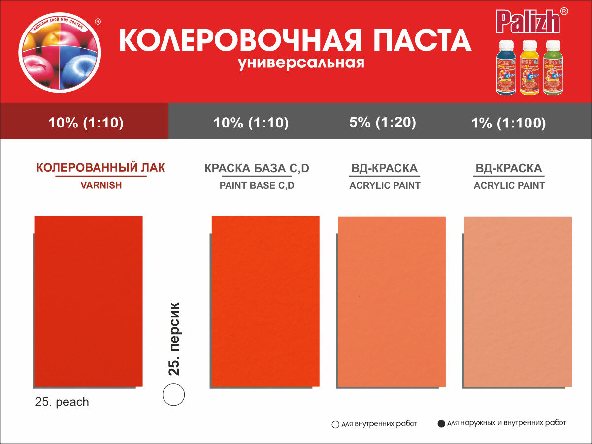 Колеровочная паста Palizh Universal Standart ST-25 персик 0.1 л