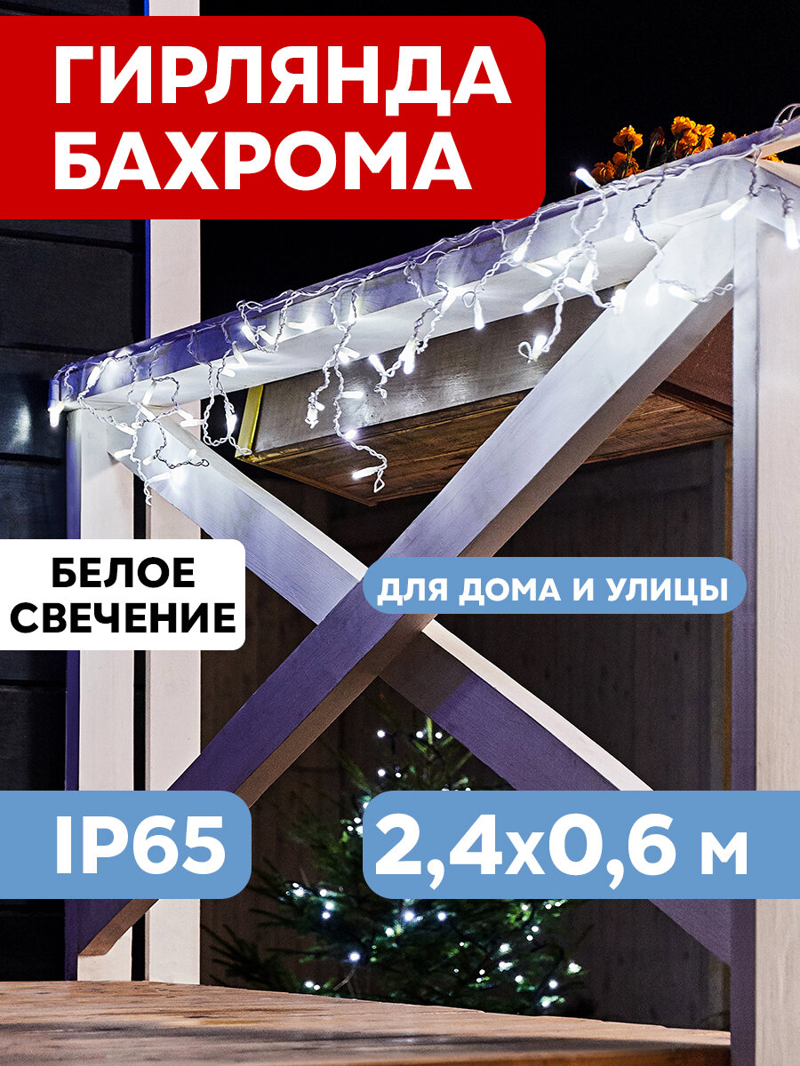 Гирлянда светодиодная Бахрома (Айсикл), 2,4х0,6м, 76 LED белый, белый ПВХ, IP65, постоянное свечение, 230В NEON-NIGHT (нужен шнур питания 303-500-1) 1 шт арт. 255-034-6