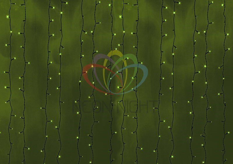 Гирлянда светодиодная Занавес 2х1,5м 360 LED зеленый белый ПВХ IP65 постоянное свечение 230В соединяется NEON-NIGHT шнур в комплекте