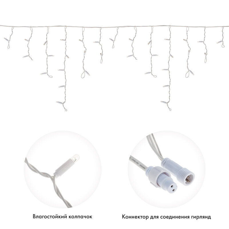 Гирлянда светодиодная «Айсикл» (бахрома) 1.8х0.5м 48LED бел. 3Вт 230В IP65 провод бел. Neon-Night 255-025
