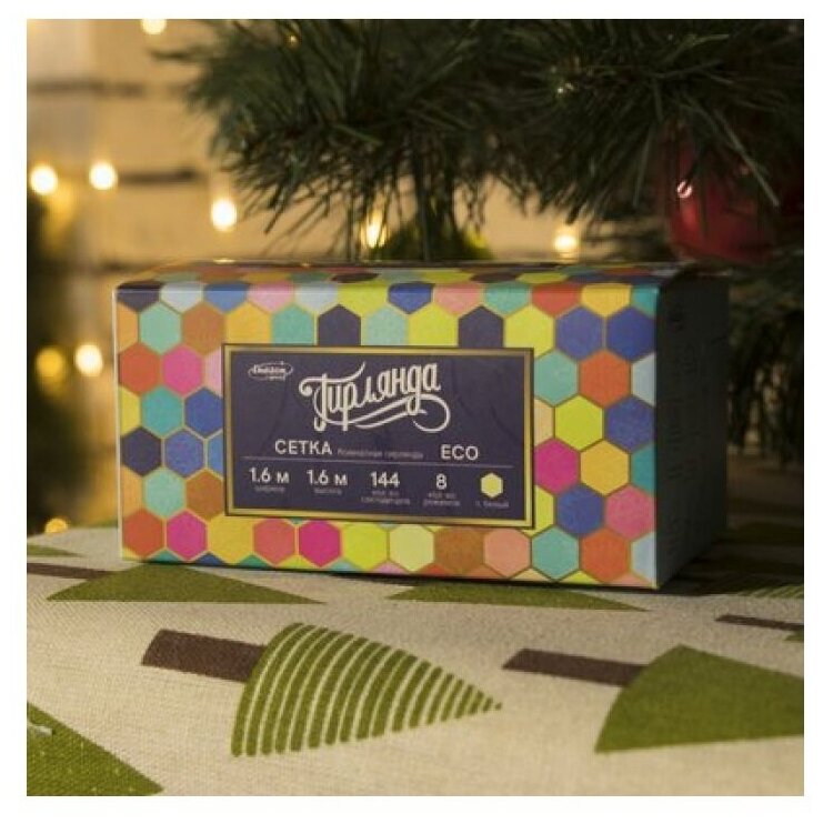 Гирлянда «Сеть» 1.6 × 1.6 м, IP20, прозрачная нить, 144 LED, свечение тёплое белое, 8 режимов, 220 В