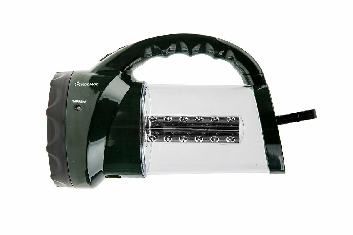 Фонарь с кемпинговой лампой аккумуляторный Космос 2008L-LED, зеленый