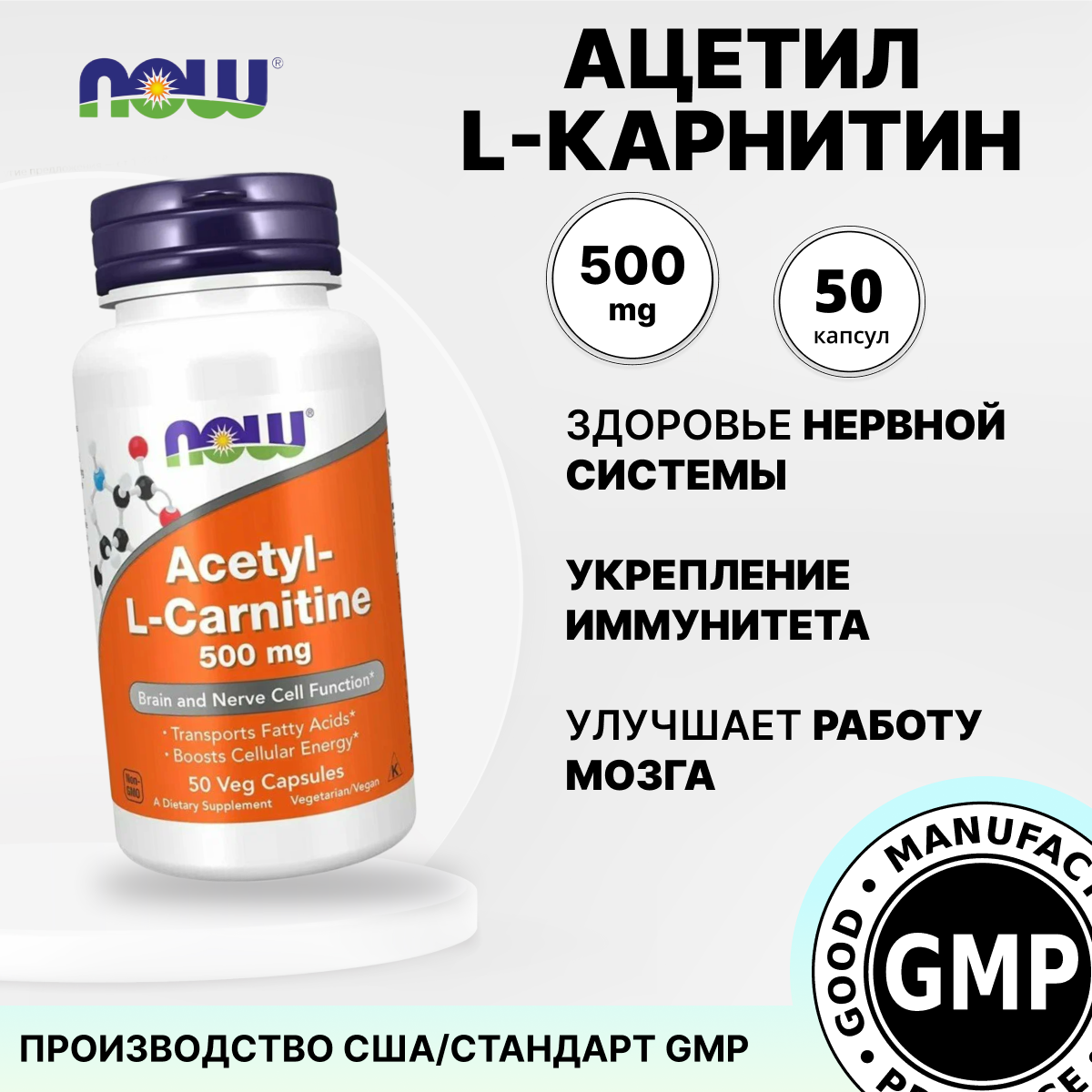 Купить NOW Foods Acetyl-L-Carnitine 500 мг 50 капсул